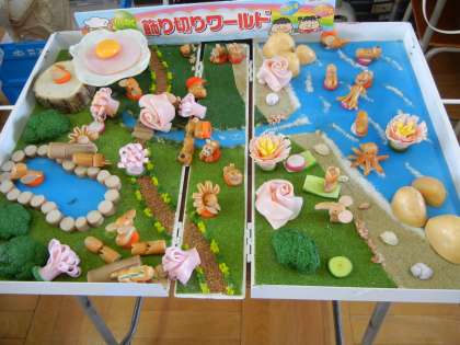 写真は、スーパーアルプスさん、日本ハムさんの協力で実施した「親子飾り切り教室」の写真です。