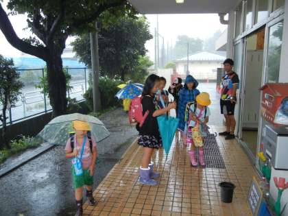 16日は台風が接近する中での登校となりました。いつもより早めに校舎に入りました。雨が強く降っています。