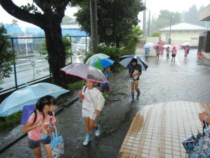 この雨の中でも、運動靴で来る子も多く見られました。靴の中はびしょびしょです。長靴の方がいいんですが・・・。