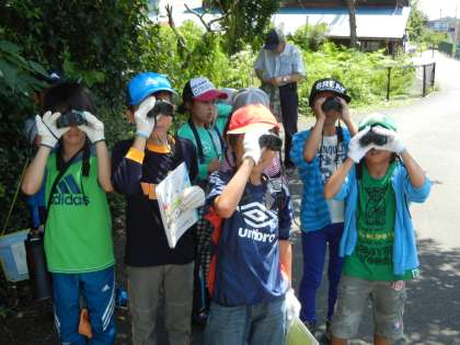 川の鳥を学習する班です。この日はラッキーなことに、「アオサギ」や「カワセミ」が飛んでいるところと、止まっているところを両方見ることができました。青がとてもきれいでした。
