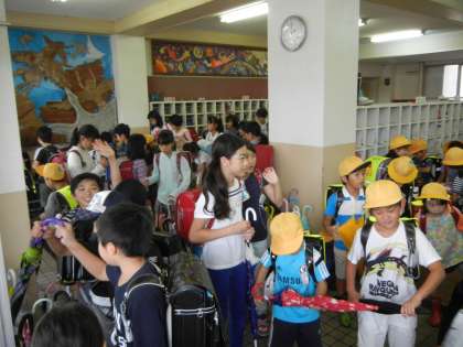 台風18号の影響で、下校時の風雨が心配されました。メールを見て、お迎えに来ていただいた保護者の皆様には感謝申し上げます。