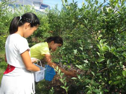 今日のブルーベリーは 給食委員会が 学校の前の澤田園さんへ行って摘んできたものを給食に出しています。