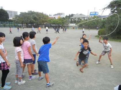 大繩集会に向けて、各クラスで休み時間に大繩をする子が増えてきました。