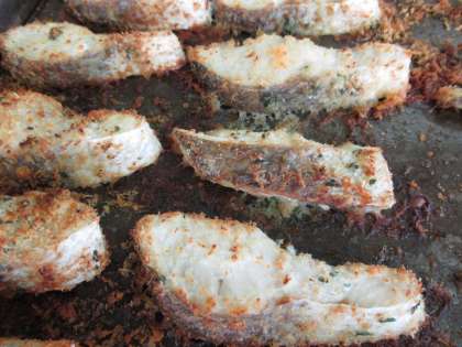 ニンニク、パセリで味付けし、パン粉をふって焼きます。