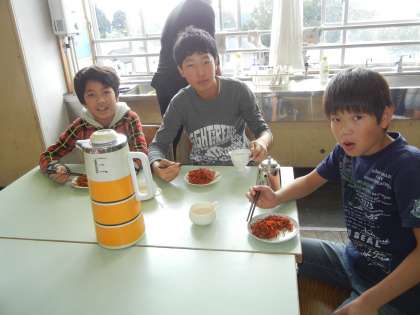 そこに、レモンなどの酸性をかけると、元の色にもどるので、子供たちも2色の色焼きそばを作りました。