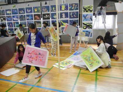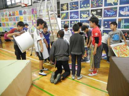 5年生が、展示されていた絵を、学年の先生に届けてくれています。