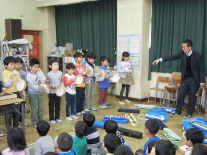 1組の子たちは合唱は「おもちゃのチャチャチャ」、合奏は「かえるの合唱」をしました。