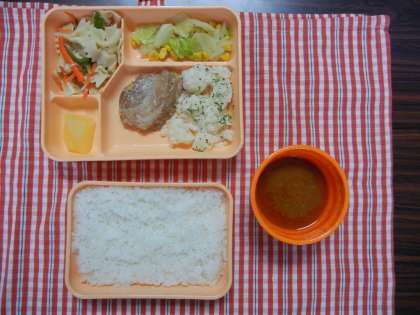 2月8日、6年生が中学校で提供されているデリバリー給食の体験をしました。メニューは、チキンカレーを主としたものです。6年生と専科の先生、事務室、管理職も食べました。おいしかったです。