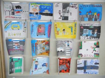 3年生が、交通安全ポスター作りに取り組んでいます。目立つように、読みやすいようになど、たくさん工夫して描いてくれました。