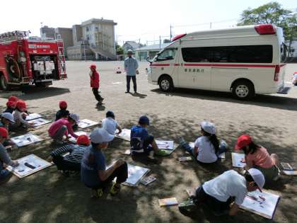 出来上がった絵は、各教室の廊下掲示板に貼ってあります。