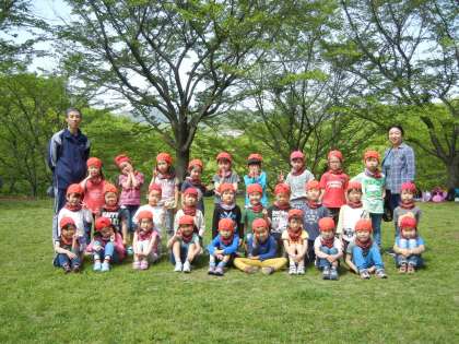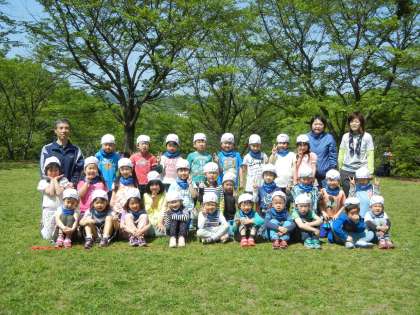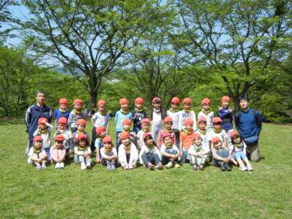 40分ぐらい歩く道のりでしたが、子供たちは頑張って歩きました。到着後はすぐに集合写真を撮りました。