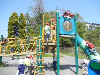 帰りには、公園下でトイレ休憩をしてから、水筒への水補給後、少しだけ遊びました。