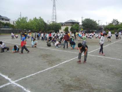 5月16日、運動会まで2週間を切りました。今週から校庭での練習も始まります。その前に、全校児童で、石拾いをしました。