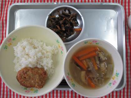 ごはん あじの山河焼き 沢煮わん 長ひじきの炒め煮 牛乳