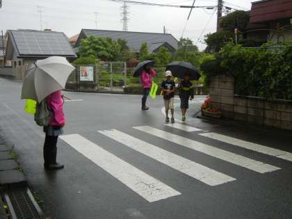 6月9日朝、安全対策委員会の方を中心に、登校の見守りをしていただきました。小雨の降る中の登校でしたが、子供たちは元気に学校に来ました。