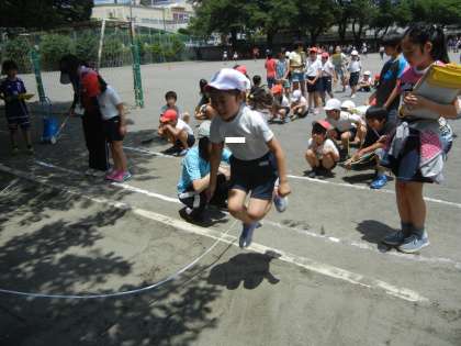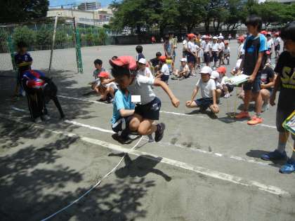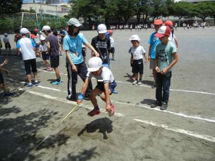 砂場では、立ち幅跳びをしていました。
