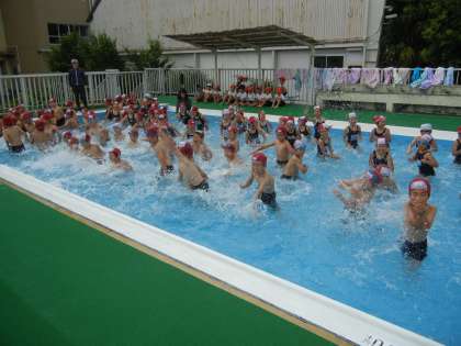 プル開きでは、代表の子が、プールの目標を話しました。途中ちょっと寒くなりましたが、子供たちは元気に水と親しんでいました。