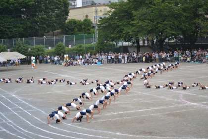 6年史絵の帆湧現は、組体操「笑顔 そして未来へ」でした。