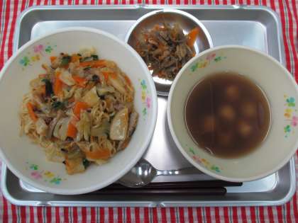 皿うどん 浦上そぼろ 白玉しるこ 牛乳
