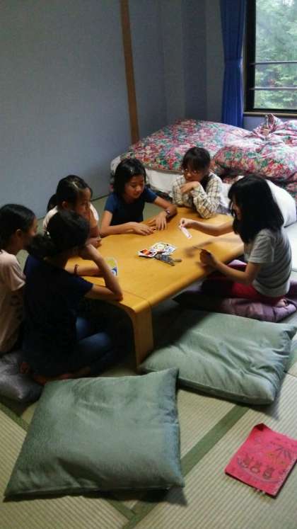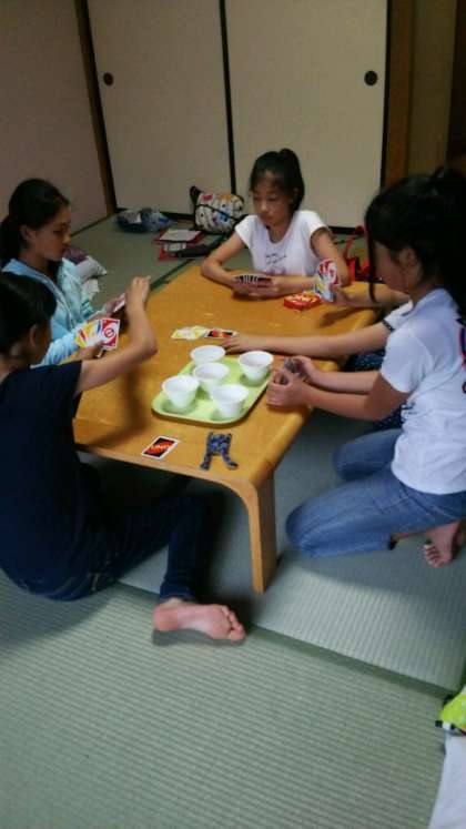 女子はテーブルゲーム(実はおしゃべり)を楽しんでいました