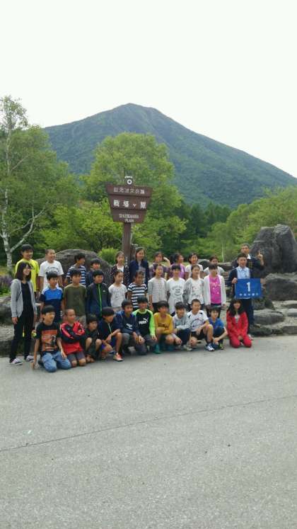 男体山の山頂までクッキリ見えたので、三本松でクラスごとの記念撮影をしました。