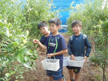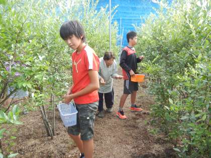9月5日(月)、給食委員会の子供たちが、学校の前にある農園で、ブルーベリー摘みをしました。
