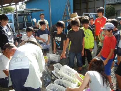 最後にみんなで計量をします。全員で10kgが目標です。何と見事10kgを達成できました。(実は2.5kgほど、農園の方が、おいしそうな実を摘んでくださっていたのですが)