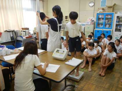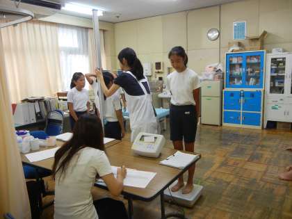 保健指導の後に、身体計測を行いました。6年生は大きいです。みんな心も身体も立派に成長しました。