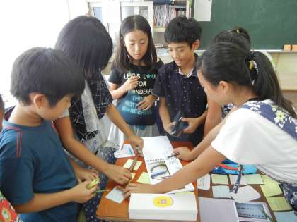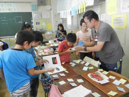 5年生が自由研究の鑑賞会を行っていました。それぞれの頑張りにコメントを書いて渡していました。いいですね。