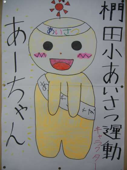 2学期のあいさつ運動が始まりました。月曜朝会でが、児童会の子供たちが、あいさつキャラクターを考え、発表してくれました。