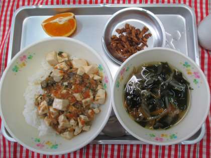マーボーなす丼 もやしスープ 黒糖ナッツ 牛乳