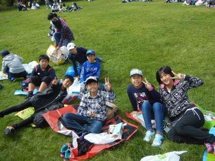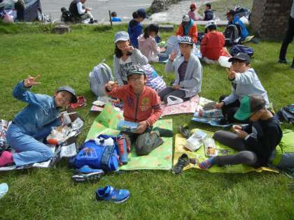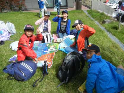 行動班ごとに昼食をとりました。