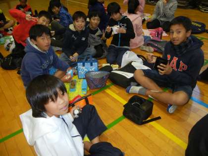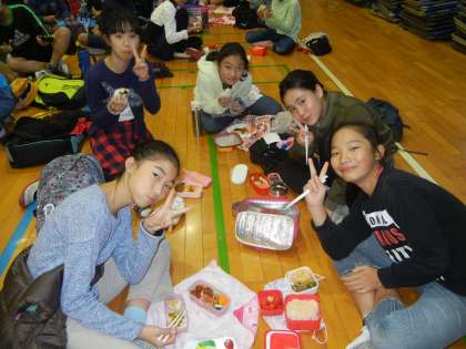 観劇から帰ってきた後に、体育館でお弁当を食べました。ご準備いただき、ありがとうございました。