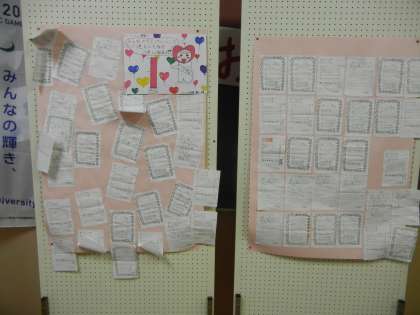 今回も、東西の昇降口に、たくさんの心温まるメッセージがはられていました。かわいいキャラクターや手作りの箱も、校内のいろいろな場所に設置され、昨年度よりもパワーアップした取り組みとなりました。