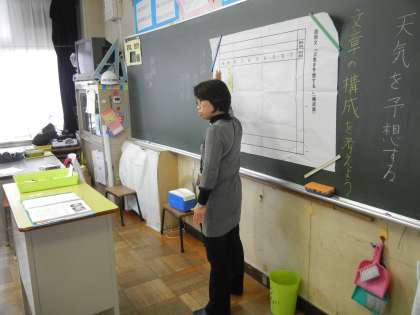 11月16日、5年2組で校内研究授業を行いました。「天気を予想する」という説明文の授業です。
