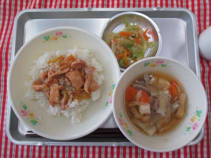 焼き鳥丼 けんちん汁 キャベツの生姜風味 牛乳