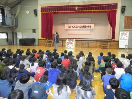 3校時は、4〜6年生対象に、大山さんの幼少期からのお話をしてくださり、夢に向かって努力することの大切さを教えてくださいました。