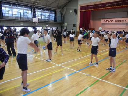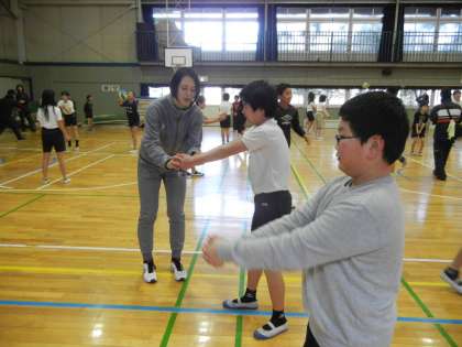 30分ほどの時間でしたが、オーバーハンドパスの練習なども、わかりやすく教えていただき、子供たちはたくさん体を動かせました。