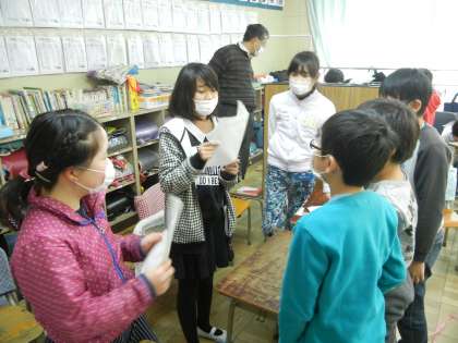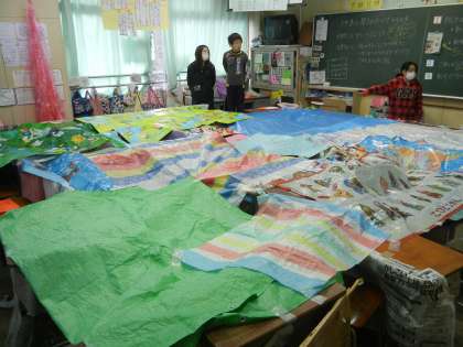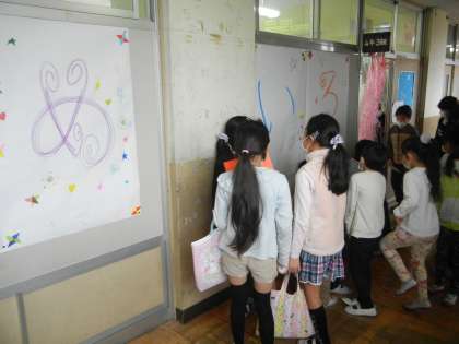 4年3組では、「めいろ」というお店屋さんを開いていました。机を上手に使い、迷路を作っていました。出口が2か所あり、ゴールしても、そこで課題が出されます。