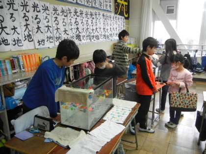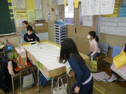 5年2組は、「ミニゲーム」というお店屋さんを開きました。エアーホッケーならぬデスクホッケーがありました。いろいろと工夫されていて、おもしろかったです。