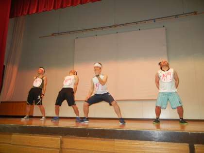 6日の全校朝会では、2月の生活目標が発表されました。「進んで体をきたえよう」です。若手男性の先生が、ランニング姿で、パフォーマンスを披露してくれました。体育館は、大盛り上がりでした。