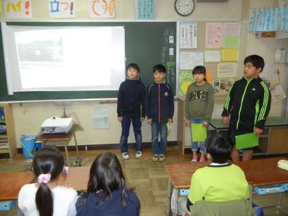 5年生は、この日のために、フィールドワーク後のデータ作成、発表原稿作り、役割分担等の準備をしてきました。
