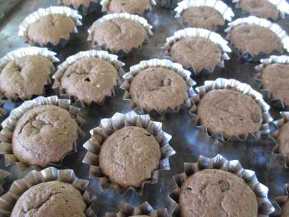 今日は元気いっぱいのみなさんに給食室から チョコチップケーキのプレゼントです。心をこめて給食室でケーキを焼きました。