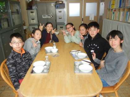 3組との会食会は、今日が最後になります。楽しい会食会でした。休んでいたお友達のために、同じ班の女子も参加してくれました。