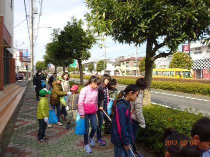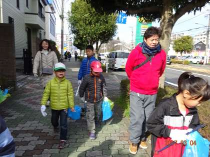 続いて、高専通りに沿ってゴミ拾いをしました。お父さんやお母さんと一緒に参加してくれた子も大勢いました。