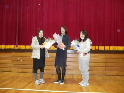 6年生は、PTAから、卒業記念品を頂きました。また、子供たちから担任の先生に、花束が贈られました。(1組は・・・)