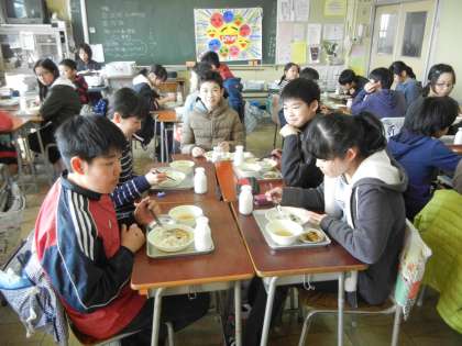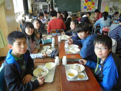 最後の給食風景6年2組
