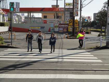 4月6日から始まった「春の交通安全旬間」が終わりました。写真は14日(金)の学校安全ボランティア、PTAの皆さんの様子です。