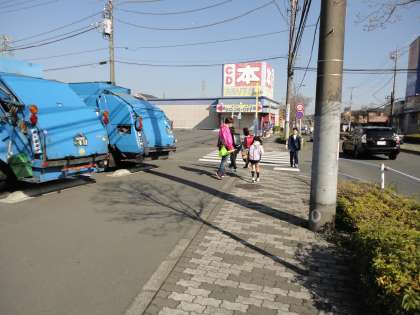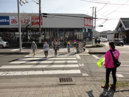 椚田遺跡公園コースは、大きな道路を横切るので、PTAの皆さんがいてくださって、とても安心です。
