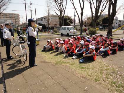 当日は、市の職員の方、高尾警察の方、椚田地区交通安全協会の方がいらして、指導してくださいました。
